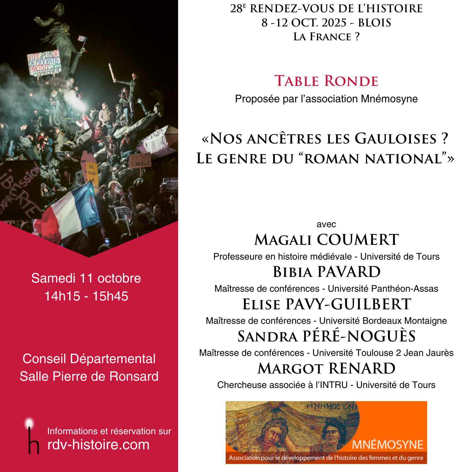 En cette année du 25e anniversaire de l’association, nous avons le plaisir de tou.te.s vous retrouver nombreux.ses à Blois, à l’occasion des Rendez-vous de l’Histoire !